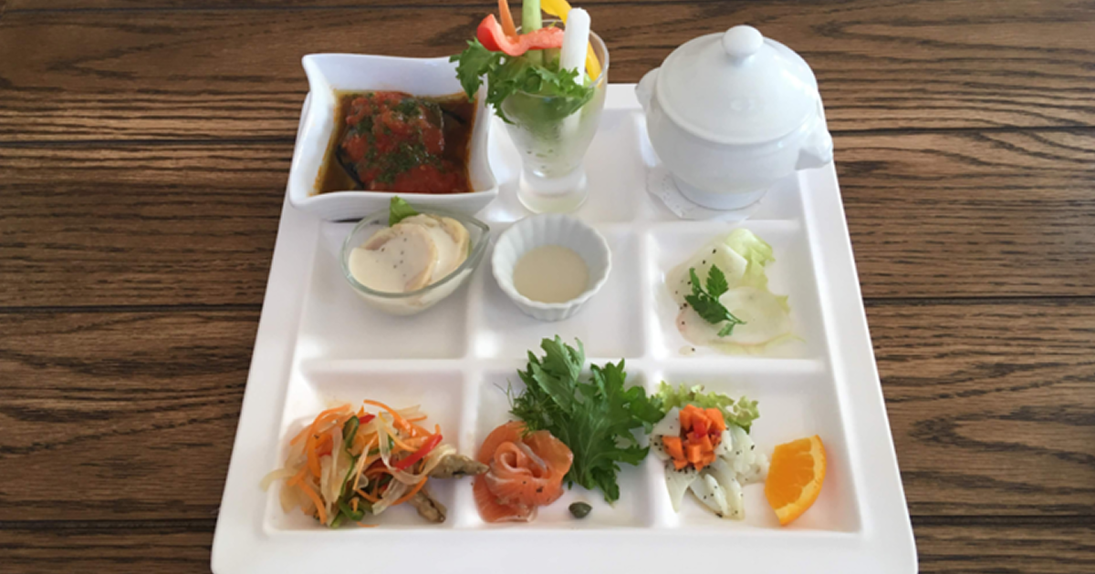 前菜で色々なお野菜をとれます。各料理の酸味が食欲をそそります。